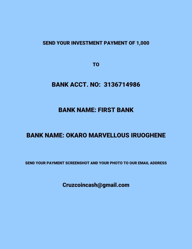 And not everyone can afford that but CRUZ COIN is giving you a privilege to invest with just N1,000.